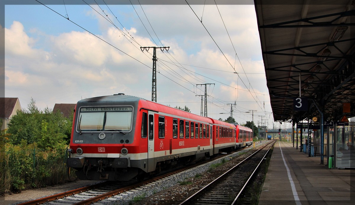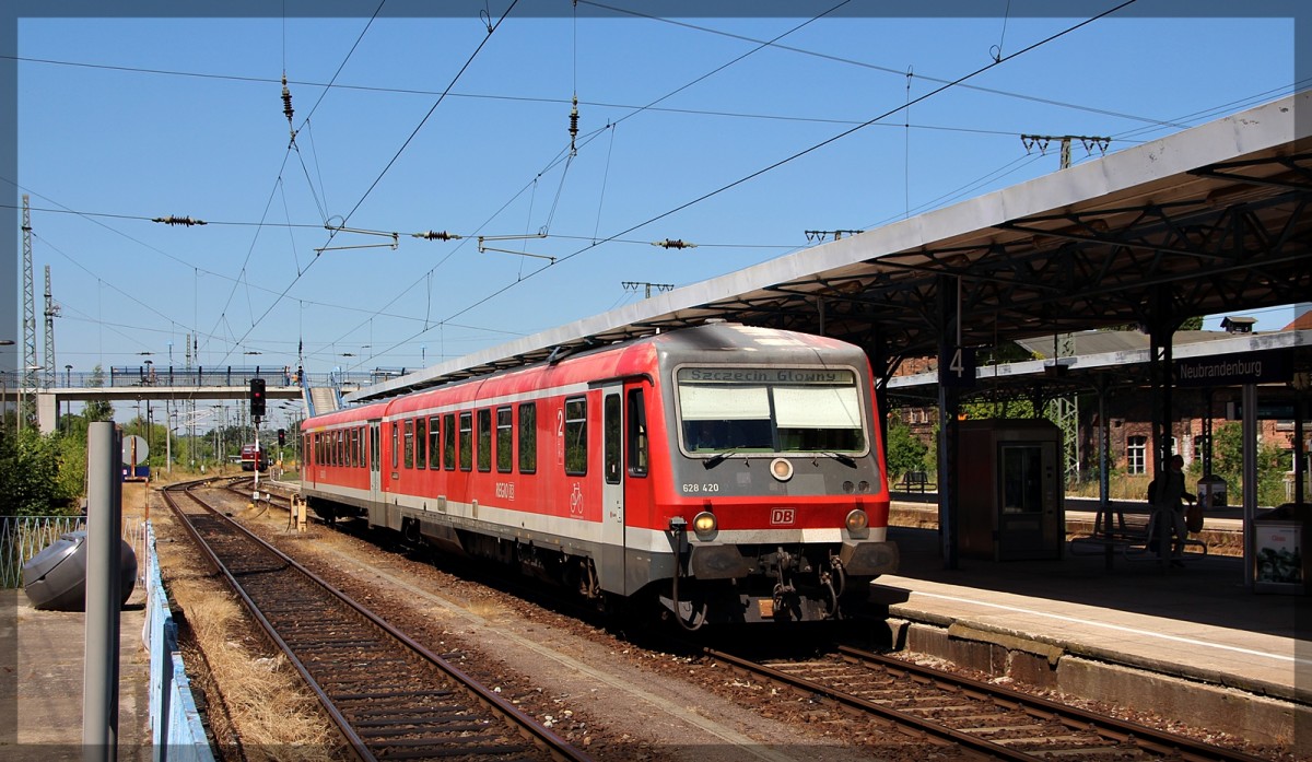 285 119 bei ihrer Pause im Neubrandenburger Gbf und der 628 427 bei der Ausfahrt in Richtung Pasewalk am 27.04.2015