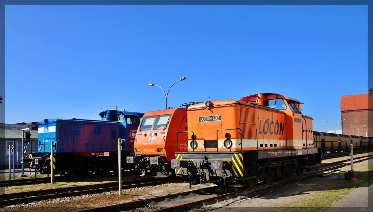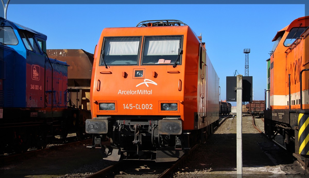 145 036 mit der 140 327 in Waren an der Müritz bei der Ausfahrt in Richtung Neustrelitz am 18.09.2014