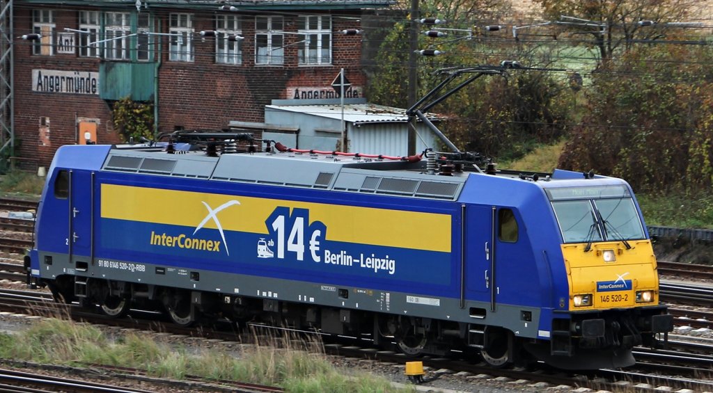 Die OLA 146 522 mit dem Interconnex in Warnemünde am 24.9.2011