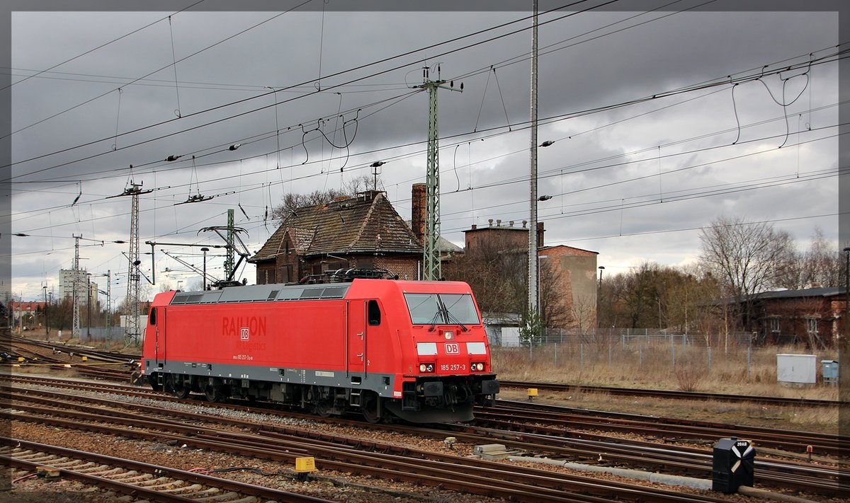 185 618 der RHC wartet in Passow auf Ausfahrt in Richtung Angermünde am 22.03.2016