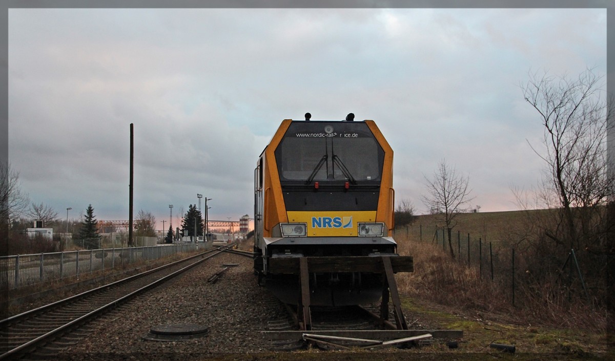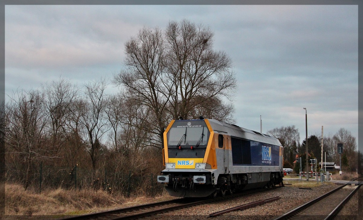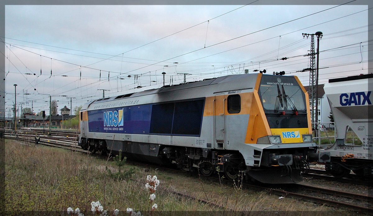264 009 der Nordic Rail Services abgestellt mit ihrem Zug und WFL 346 674 (Lok 5) in Neustrelitz Süd am 24.05.2015