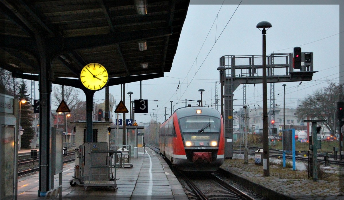 642 186 als RB von Malchow bei der EInfahrt in Bahnhof Waren (Müritz) am 06.12.2015
